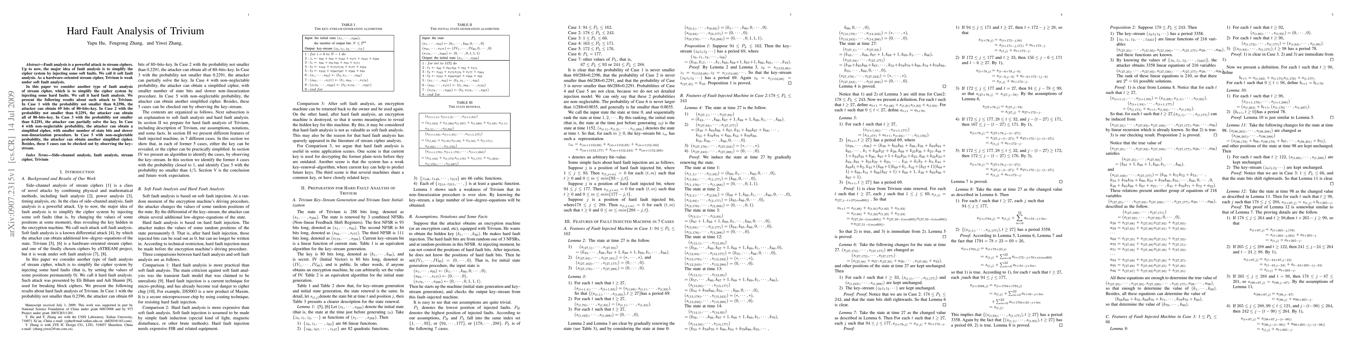 This paper investigates hard fault analysis attacks on the Trivium stream cipher, demonstrating that it is vulnerable to these attacks. The study reveals five cases where the attacker can obtain significant portions of the key or simplify the cipher, with probabilities of success ranging from 0.2291 to 0.2396.