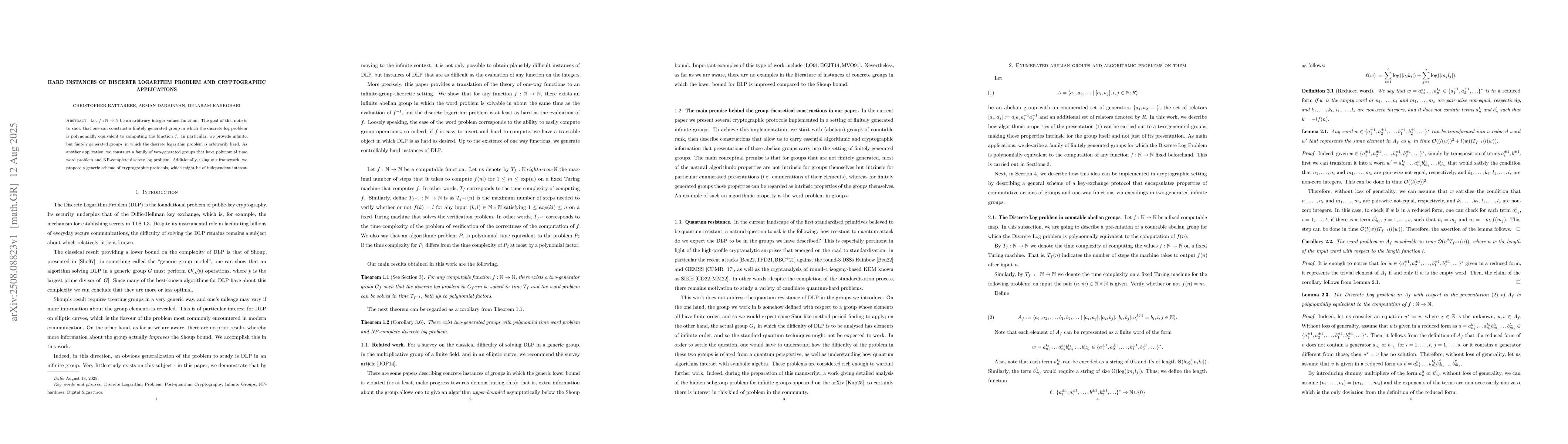 Let f be an arbitrary positive integer valued function. The goal of this note is to show that one can construct a finitely generated group in which the discrete log problem is polynomially equivalent to computing the function f. In particular, we provide infinite, but finitely generated groups, in which the discrete logarithm problem is arbitrarily hard. As another application, we construct a family of two-generated groups that have polynomial time word problem and NP-complete discrete log problem. Additionally, using our framework, we propose a generic scheme of cryptographic protocols, which might be of independent interest.