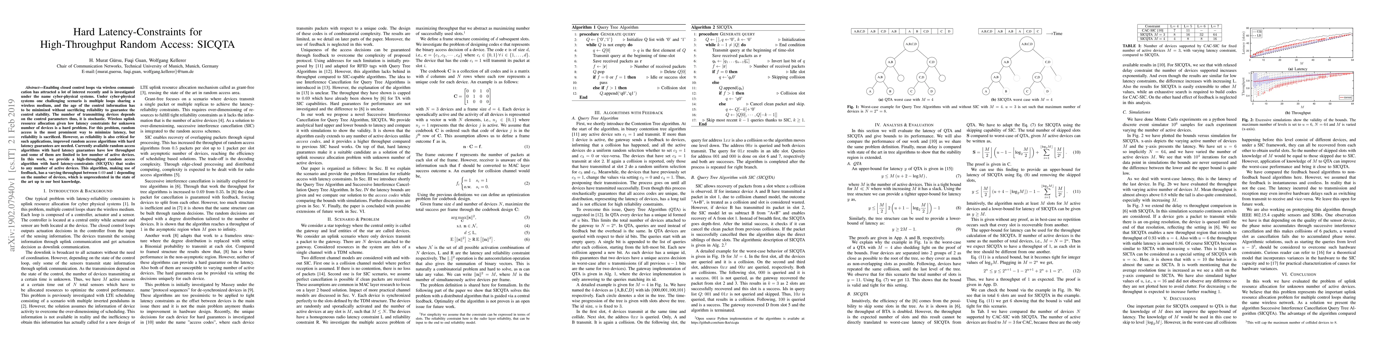 Enabling closed control loops via wireless communication has attracted a lot of interest recently and is investigated under the name cyber-physical systems. Under cyber-physical systems one challenging scenario is multiple loops sharing a wireless medium, and the age of the control information has to be minimized without sacrificing reliability to guarantee the control stability. The number of transmitting devices depends on the control parameters thus, it is stochastic. Wireless uplink resource allocation given low latency constraints for unknown number of devices is a hard problem. For this problem, random access is the most prominent way to minimize latency, but reliability is sacrificed. However, as reliability is also critical for such applications, improved random access algorithms with hard latency guarantees are needed. Currently available random access algorithms with hard latency guarantees have low throughput and some of them are limited to low number of active devices. In this work, we provide a high-throughput random access algorithm with hard latency-constraints (SICQTA) that scales to any number of active devices. This algorithm, making use of feedback, has a varying throughput between $0.69$ and $1$ depending on the number of devices, which is unprecedented in the state of the art up to our best knowledge.