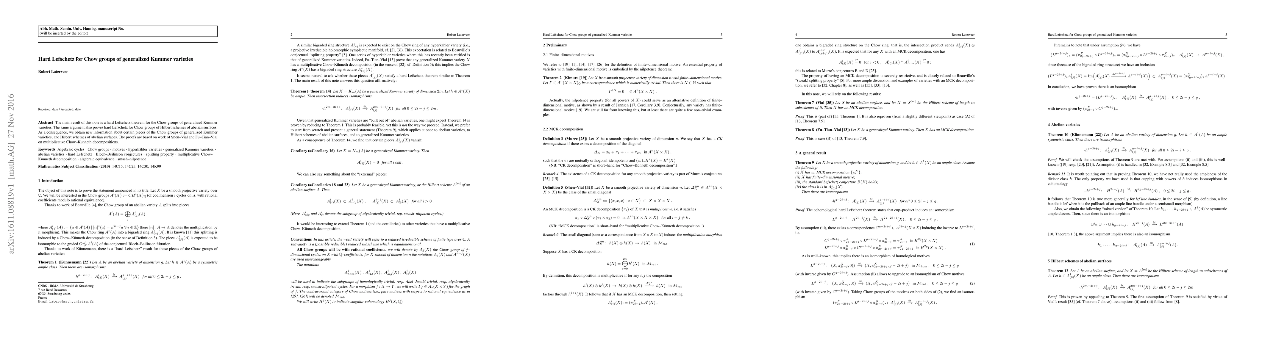 This paper establishes a hard Lefschetz theorem for the Chow groups of generalized Kummer varieties and Hilbert schemes of abelian surfaces, utilizing Shen-Vial and Fu-Tian-Vial's work on multiplicative Chow-Künneth decompositions. The result provides new insights into specific parts of these Chow groups.
