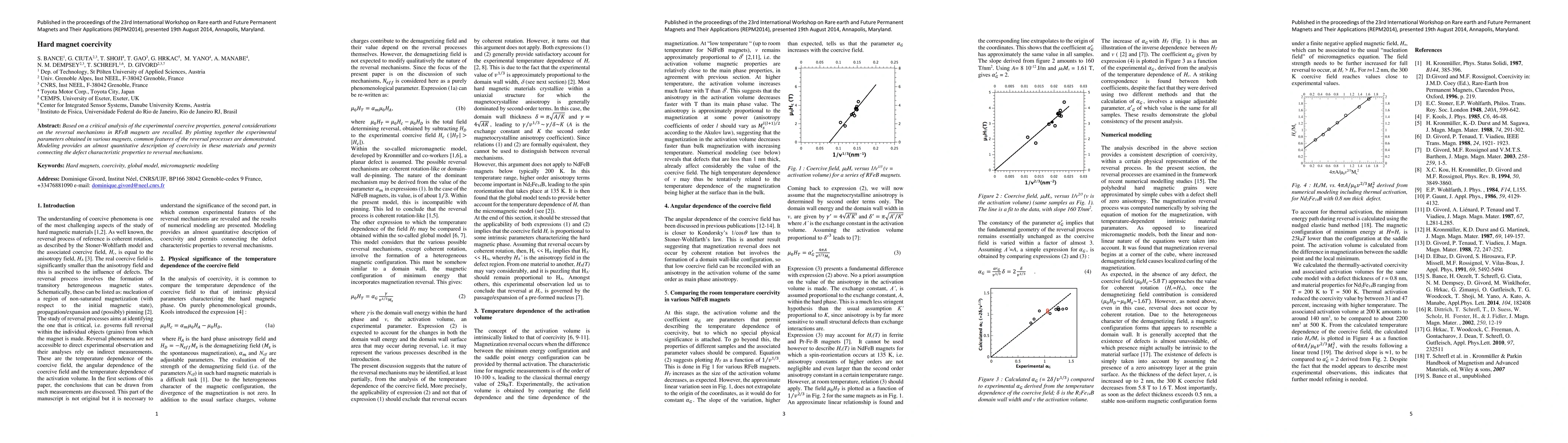 This paper analyzes the coercive properties of RFeB magnets, demonstrating common reversal mechanisms through experimental data and modeling. The study connects defect characteristics to the reversal processes, providing a nearly quantitative description of coercivity.