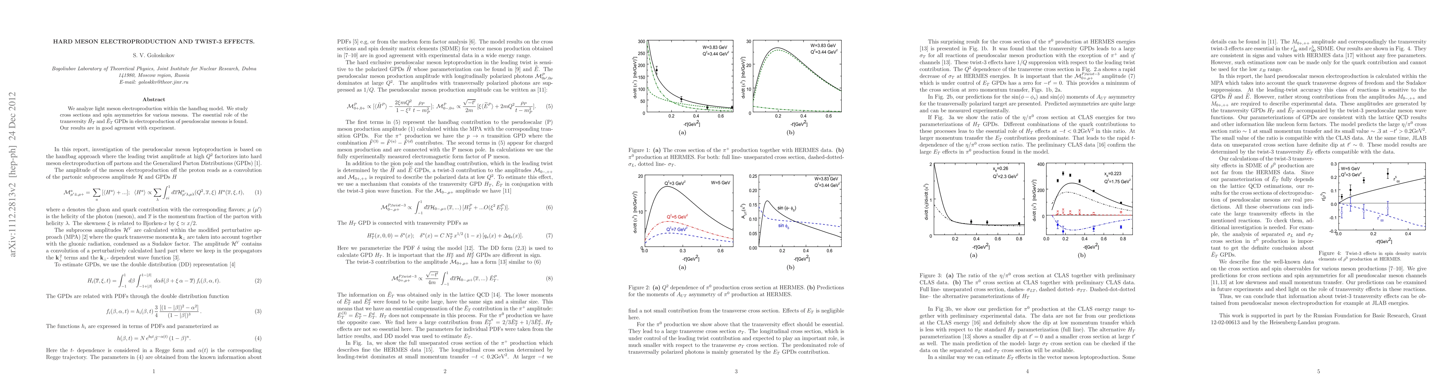 We analyze light meson electroproduction within the handbag model. We study cross sections and spin asymmetries for various mesons. The essential role of the transversity $\tilde H_T$ and $\tilde E_T$ GPDs in electroproduction of pseudoscalar mesons is found. Our results are in good agrement with experiment.