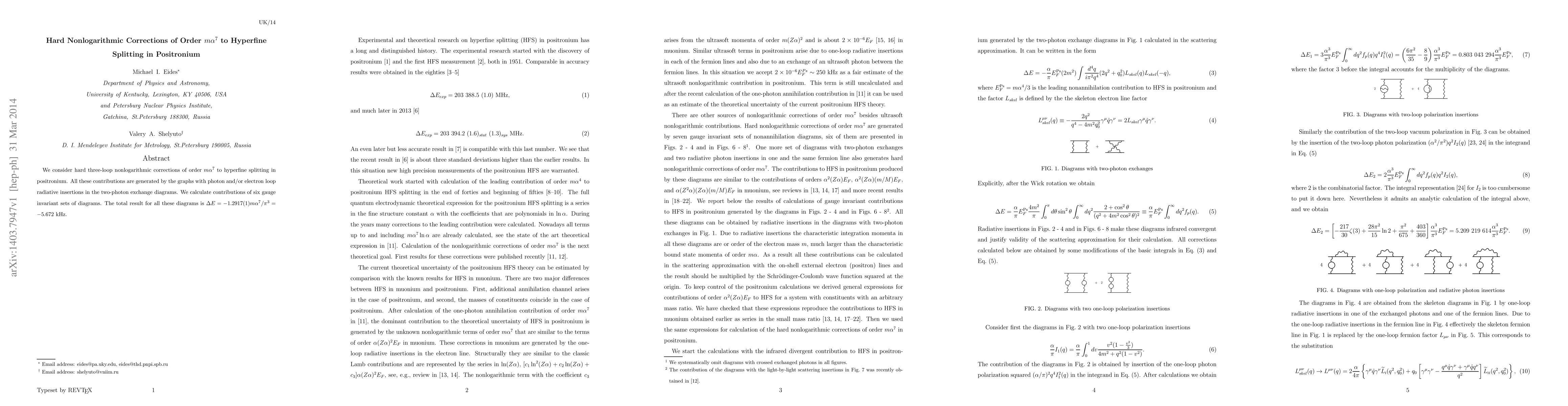 Researchers calculated nonlogarithmic corrections to hyperfine splitting in positronium with a precision of $-1.2917(1)meta^7/ iet$, revealing a total result of $ abla E = -5.672$ kHz.