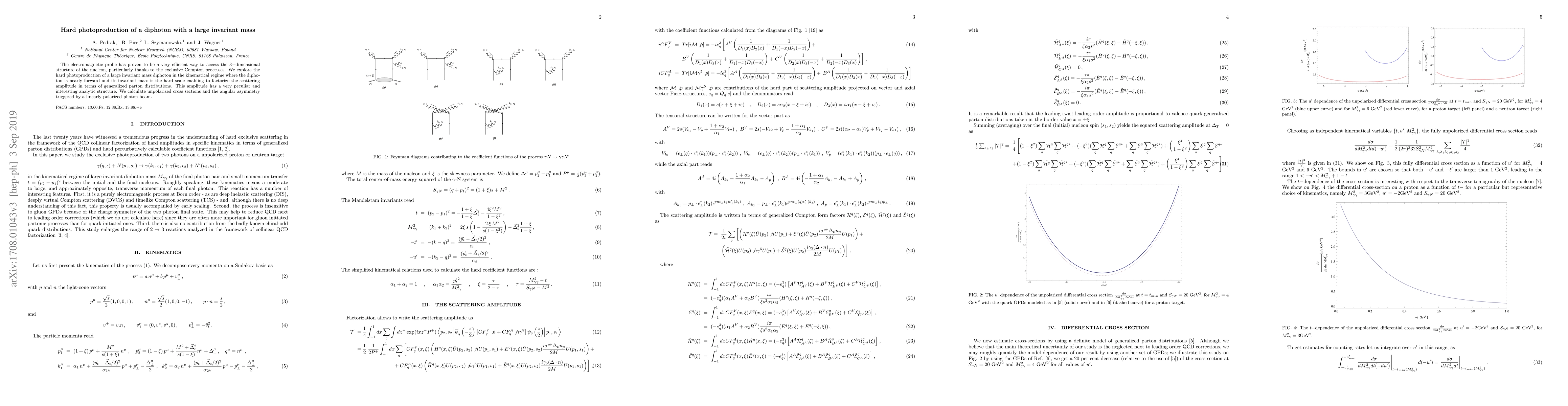 The electromagnetic probe has proven to be a very efficient way to access the $3-$dimensional structure of the nucleon, particularly thanks to the exclusive Compton processes. We explore the hard photoproduction of a large invariant mass diphoton in the kinematical regime where the diphoton is nearly forward and its invariant mass is the hard scale enabling to factorize the scattering amplitude in terms of generalized parton distributions. This amplitude has a very peculiar and interesting analytic structure. We calculate unpolarized cross sections and the angular asymmetry triggered by a linearly polarized photon beam.