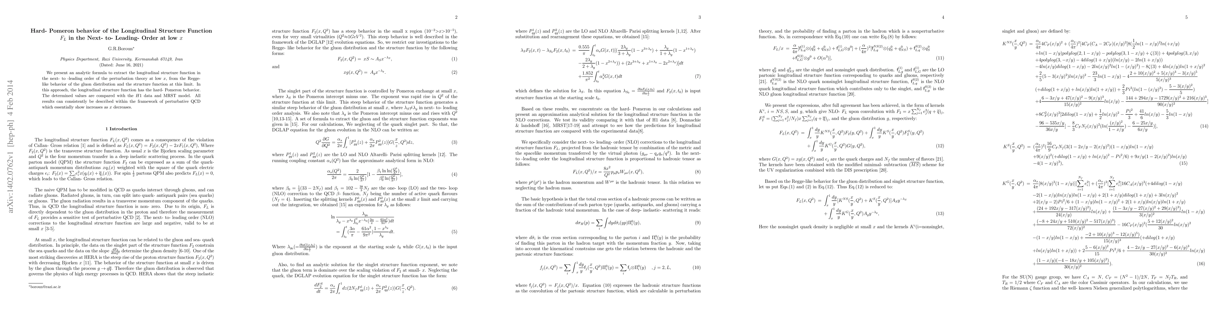 This study presents an analytic formula to extract the longitudinal structure function at low x, revealing hard-Pomeron behavior consistent with perturbative QCD results.
