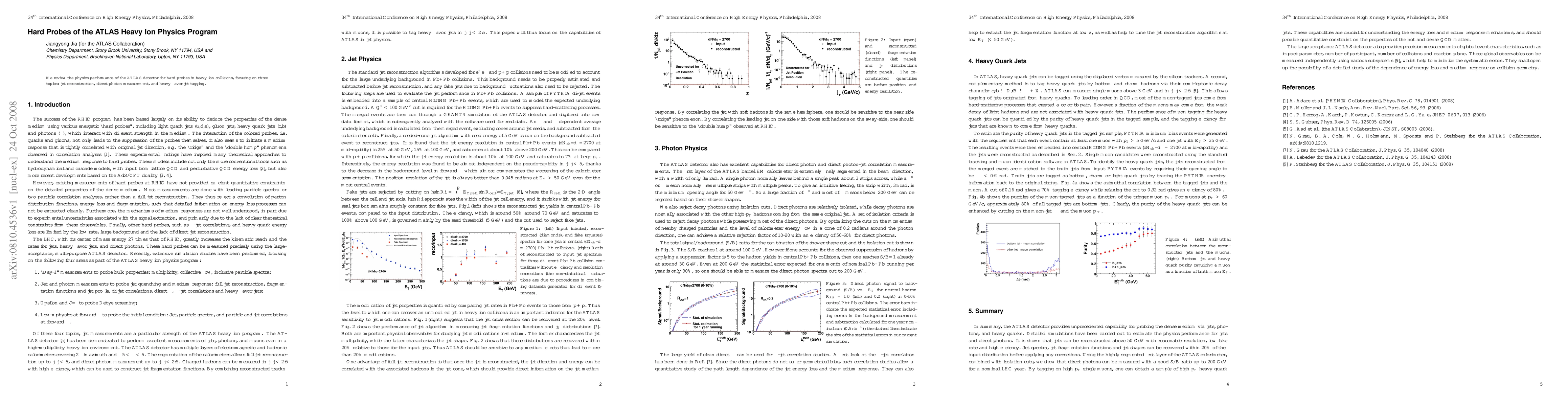 Summary: This paper reviews the ATLAS detector's performance for hard probes in heavy ion collisions, emphasizing jet reconstruction, direct photon measurement, and heavy flavor jet tagging. The findings highlight the detector's capabilities in these key areas.