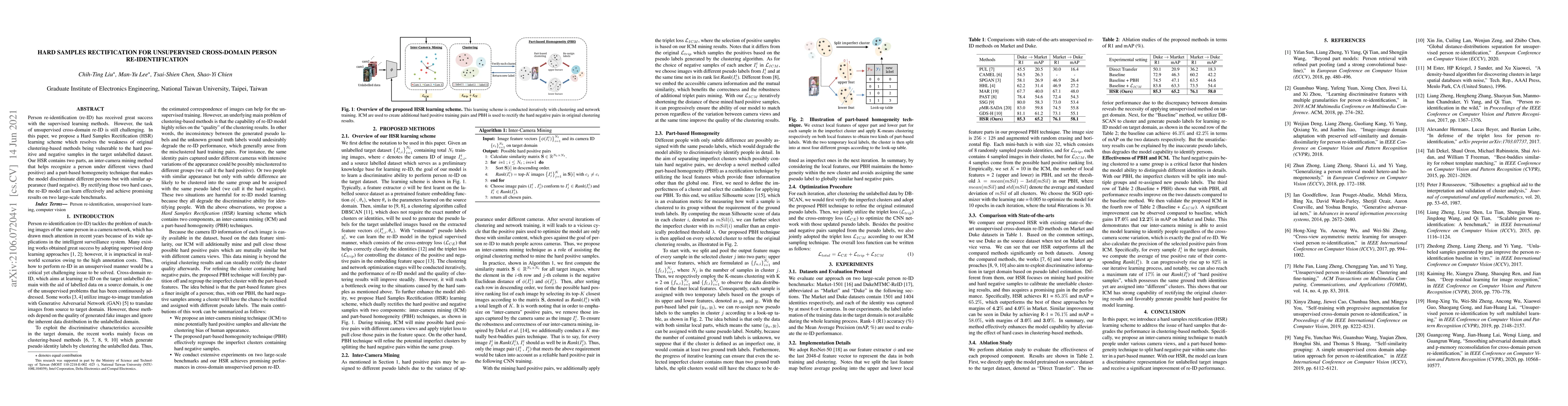 This paper proposes a Hard Samples Rectification (HSR) scheme for unsupervised cross-domain person re-identification, addressing the challenges posed by hard positive and negative samples. The method includes an inter-camera mining technique for recognizing individuals from different views and a part-based homogeneity approach to distinguish similar-looking individuals, achieving promising results on large-scale benchmarks.