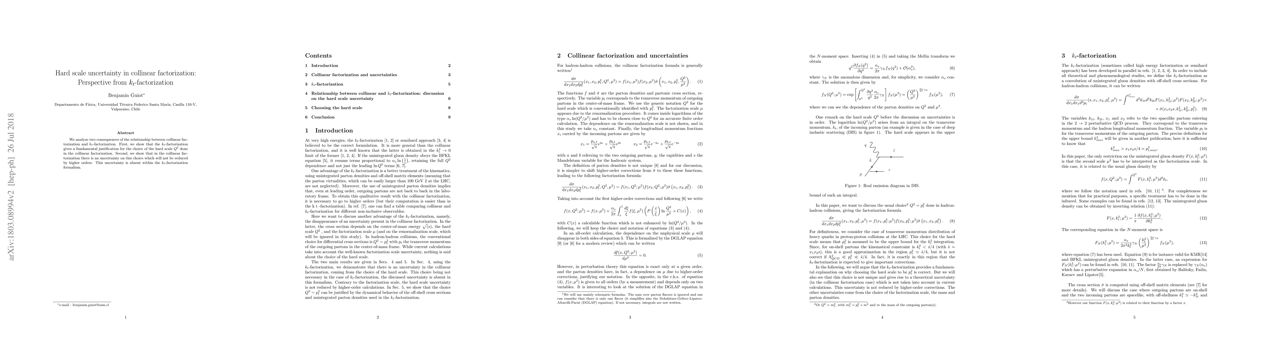 A research paper explores how $k_t$-factorization resolves uncertainty in hard scale choice, unlike collinear factorization, which has inherent uncertainty that cannot be reduced by higher orders.