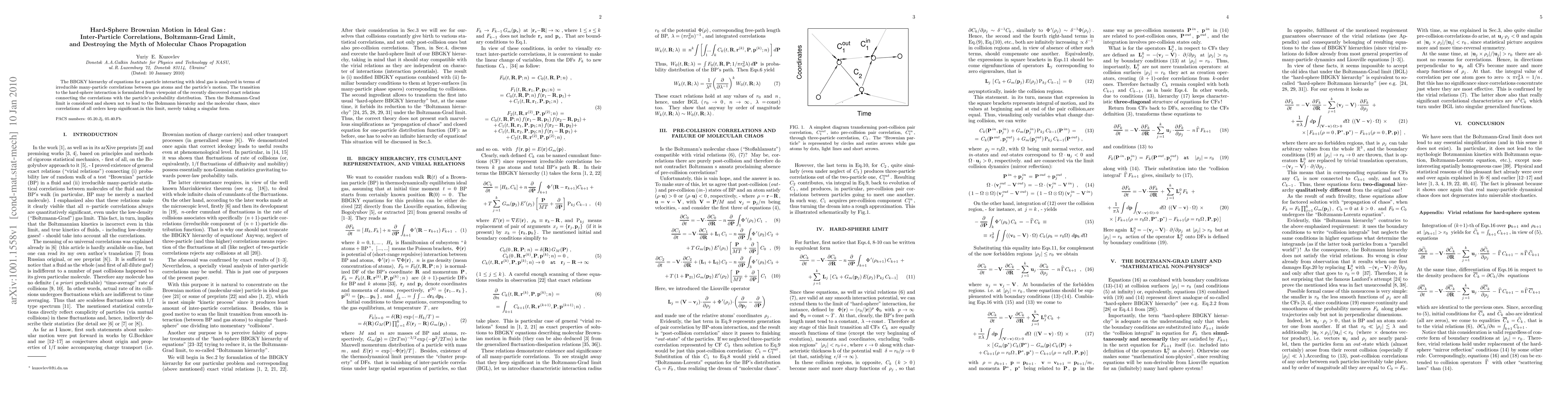 This paper analyzes the BBGKY hierarchy for hard-sphere Brownian motion in an ideal gas, revealing that the Boltzmann-Grad limit does not uphold molecular chaos due to persistent, non-negligible inter-particle correlations of all orders. It challenges the traditional view that molecular chaos is inherent in this limit.