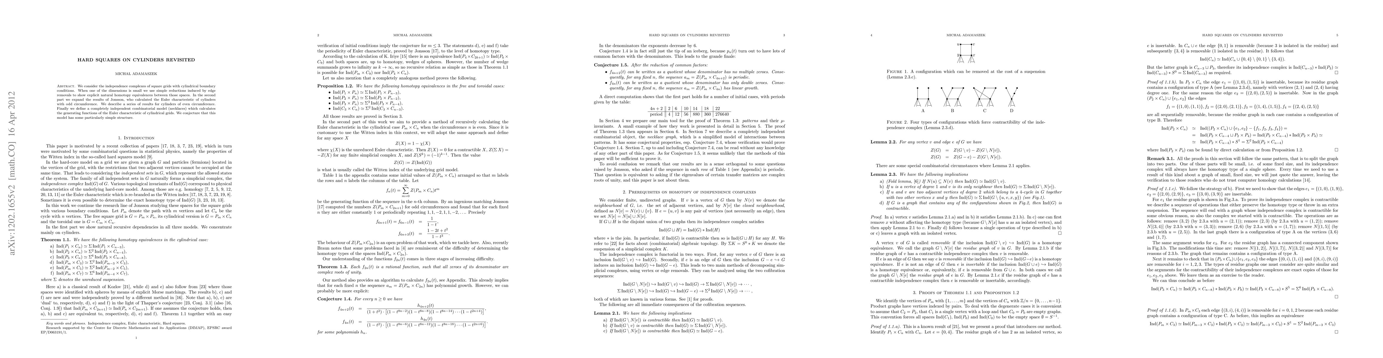 We consider the independence complexes of square grids with cylindrical boundary conditions. When one of the dimensions is small we use simple reductions induced by edge removals to show explicit natural homotopy equivalences between those spaces. In the second part we expand the results of Jonsson, who calculated the Euler characteristic of cylinders with odd circumference. We describe a series of results for cylinders of even circumference. Finally we define a completely independent combinatorial model (necklaces) which calculates the generating functions of the Euler characteristic of cylindrical grids. We conjecture that this model has some particularly simple structure.