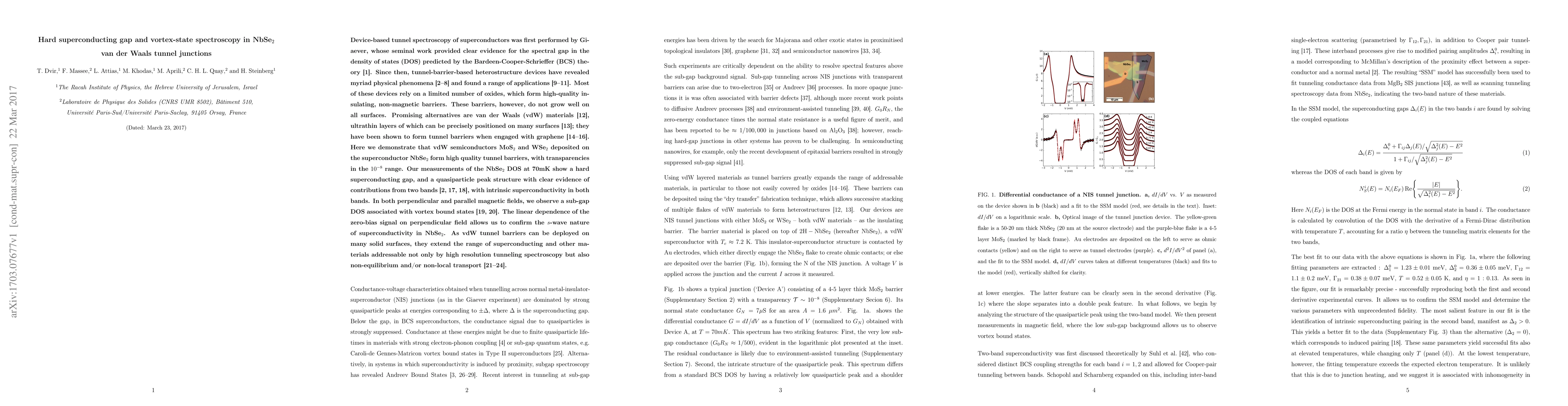 This paper demonstrates that van der Waals (vdW) materials like MoS$_2$ and WSe$_2$ form high-quality tunnel barriers with NbSe$_2$, revealing a hard superconducting gap and quasiparticle peaks from two bands. The study confirms s-wave superconductivity in NbSe$_2$ and suggests vdW barriers as versatile tools for tunneling spectroscopy and transport studies.