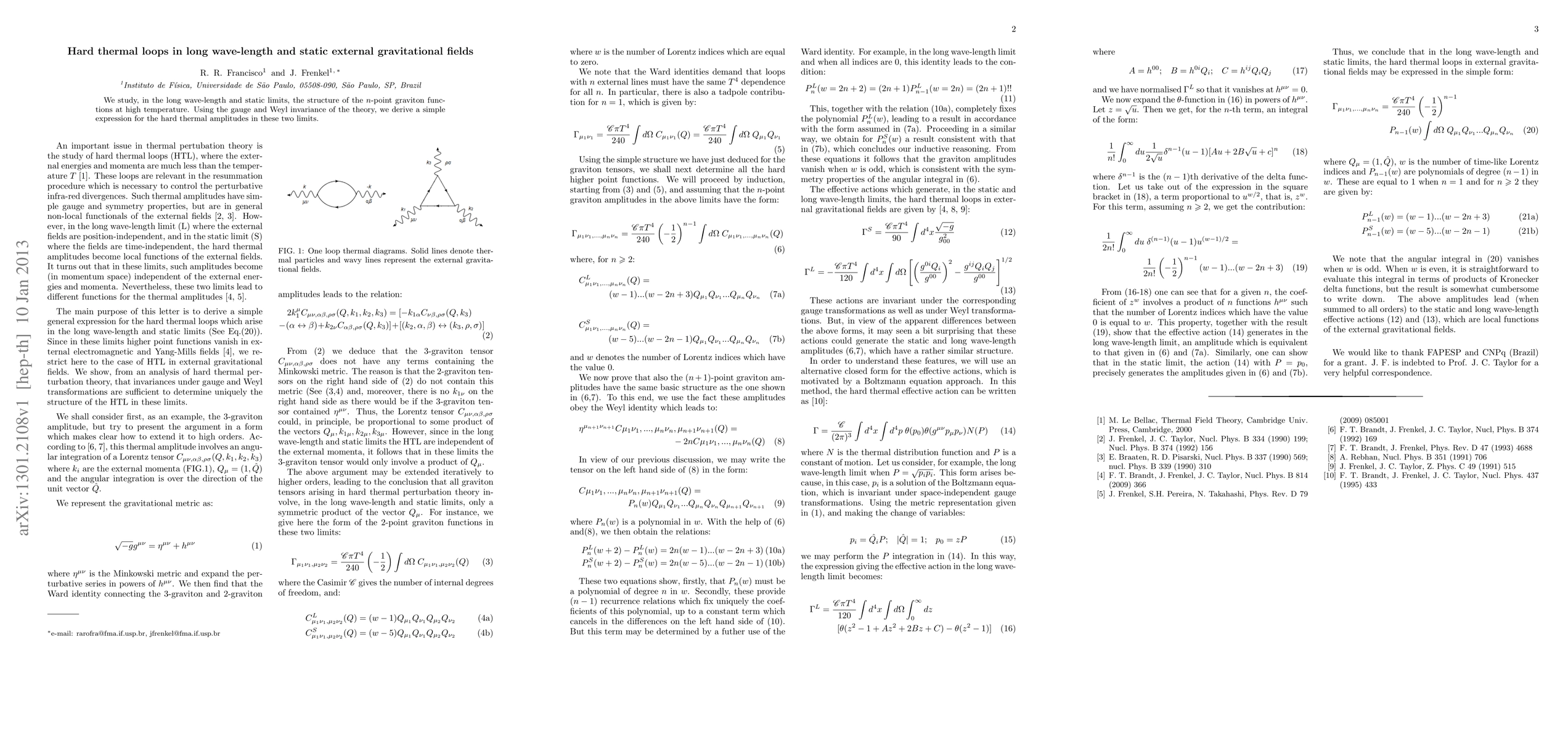 Summary: This paper investigates high-temperature graviton functions in long-wavelength and static gravitational fields, deriving a simplified expression for hard thermal amplitudes using gauge and Weyl invariance. The study focuses on the n-point graviton functions in these specific limits.