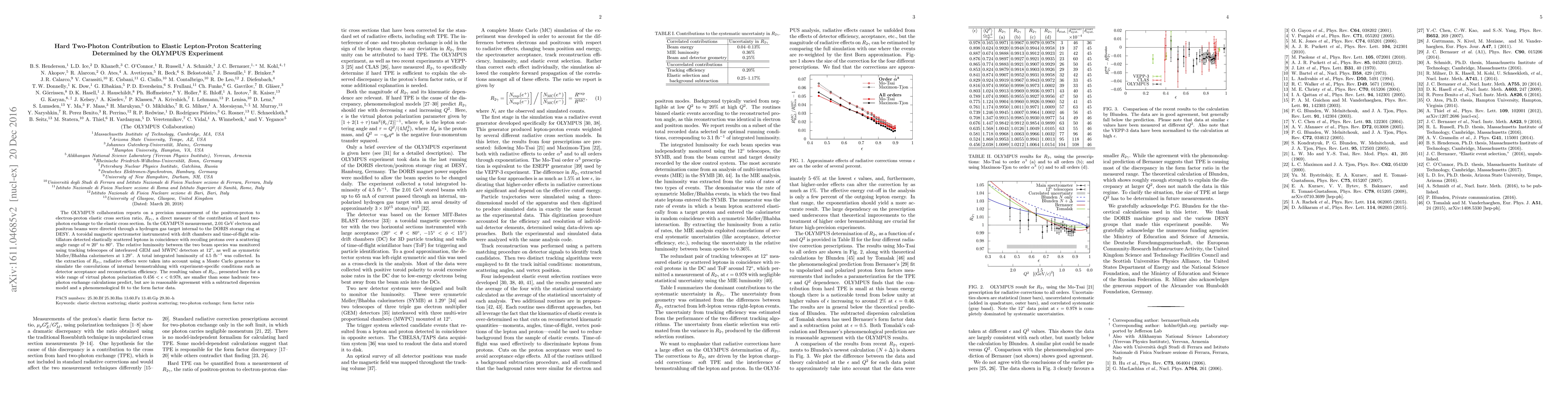 The OLYMPUS experiment precisely measured the positron-proton to electron-proton elastic cross section ratio, $R_{2\gamma}$, to determine the contribution of hard two-photon exchange. Results show $R_{2\gamma}$ values smaller than some predictions but in agreement with a subtracted dispersion model and a phenomenological fit.
