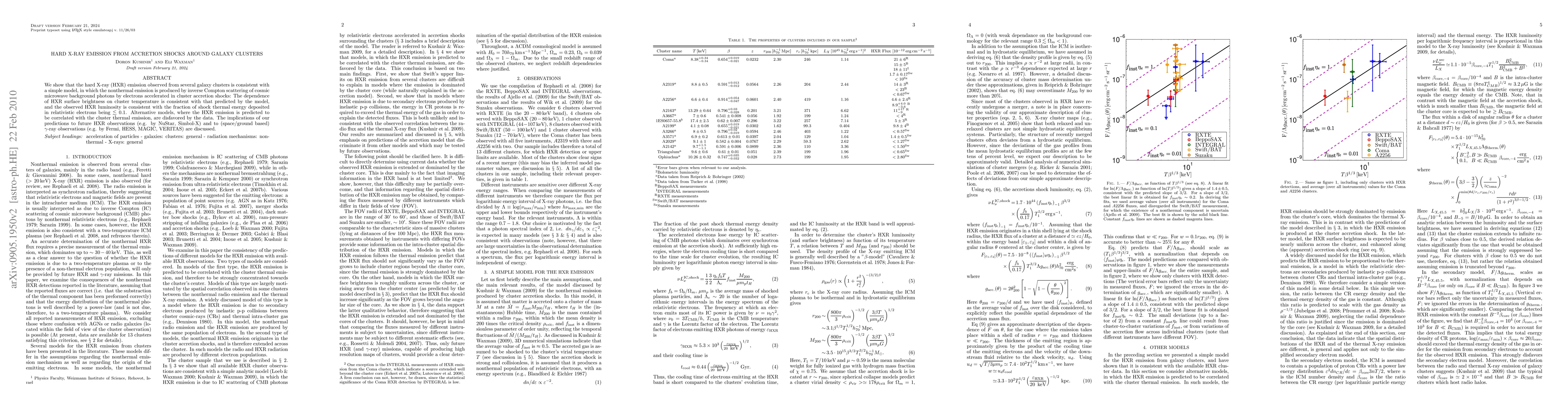 This paper proposes a model explaining hard X-ray emission from galaxy clusters via inverse Compton scattering of cosmic microwave background photons by electrons accelerated in accretion shocks. The model's predictions align with observed HXR luminosity and surface brightness, disfavoring alternative models correlating HXR with thermal emission.
