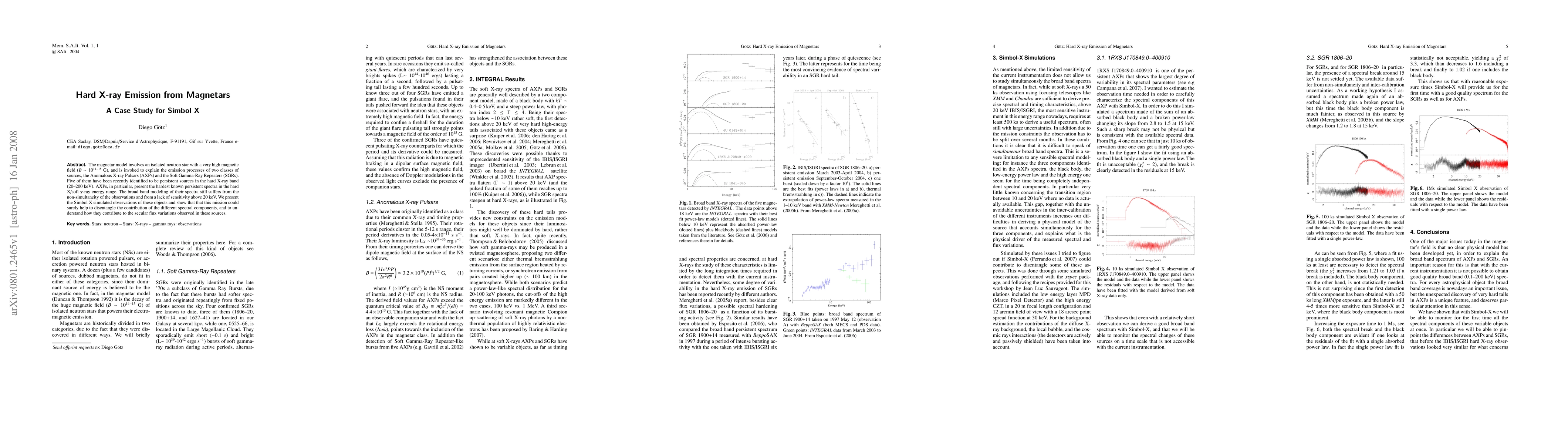 The magnetar model involves an isolated neutron star with a very high magnetic field (B~10^14-10^15 G), and is invoked to explain the emission processes of two classes of sources, the Anomalous X-ray Pulsars (AXPs) and the Soft Gamma-Ray Repeaters (SGRs). Five of them have been recently identified to be persistent sources in the hard X-ray band (20-200 keV). AXPs, in particular, present the hardest known persistent spectra in the hard X/soft gamma-ray energy range. The broad band modeling of their spectra still suffers from the non-simultaneity of the observations and from a lack of sensitivity above 20 keV. We present the Simbol X simulated observations of these objects and show that that this mission could surely help to disentangle the contribution of the different spectral components, and to understand how they contribute to the secular flux variations observed in these sources.