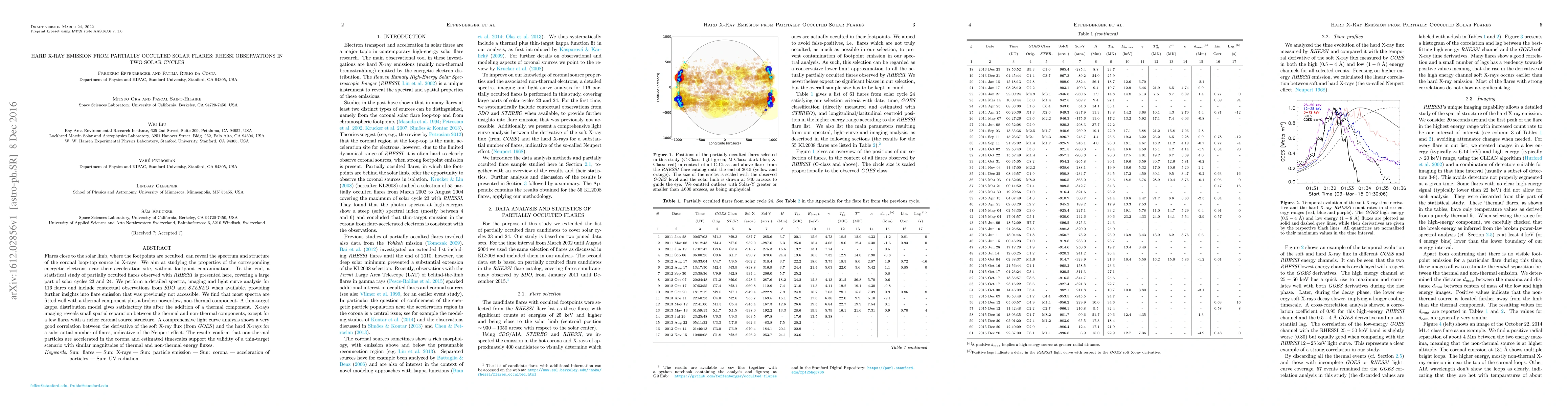 This study analyzes partially occulted solar flares using RHESSI observations across solar cycles 23 and 24, revealing the spectral and structural properties of the coronal loop-top source. The findings suggest that most flares exhibit a combination of thermal and non-thermal components, with a strong correlation between soft and hard X-ray emissions, supporting a thin-target acceleration mechanism.