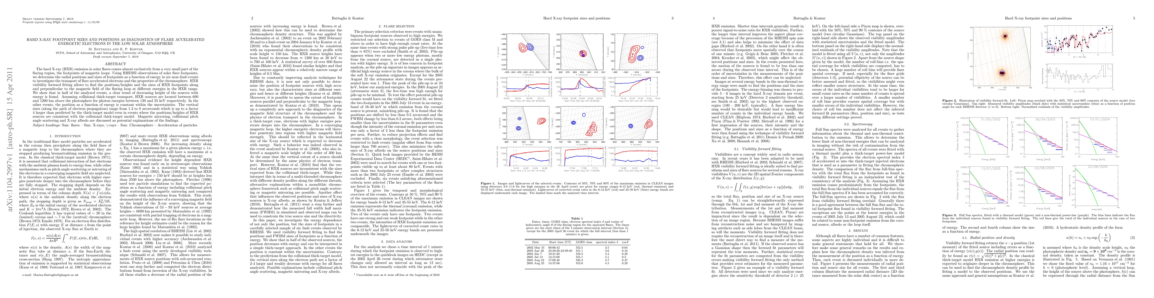 This study uses RHESSI observations to determine the radial positions and sizes of hard X-ray footpoints in solar flares, revealing that in half of the analyzed events, the height of these sources decreases with energy. The findings suggest discrepancies in vertical sizes compared to predictions from the thick-target model, prompting discussions on magnetic mirroring and other factors to explain these observations.