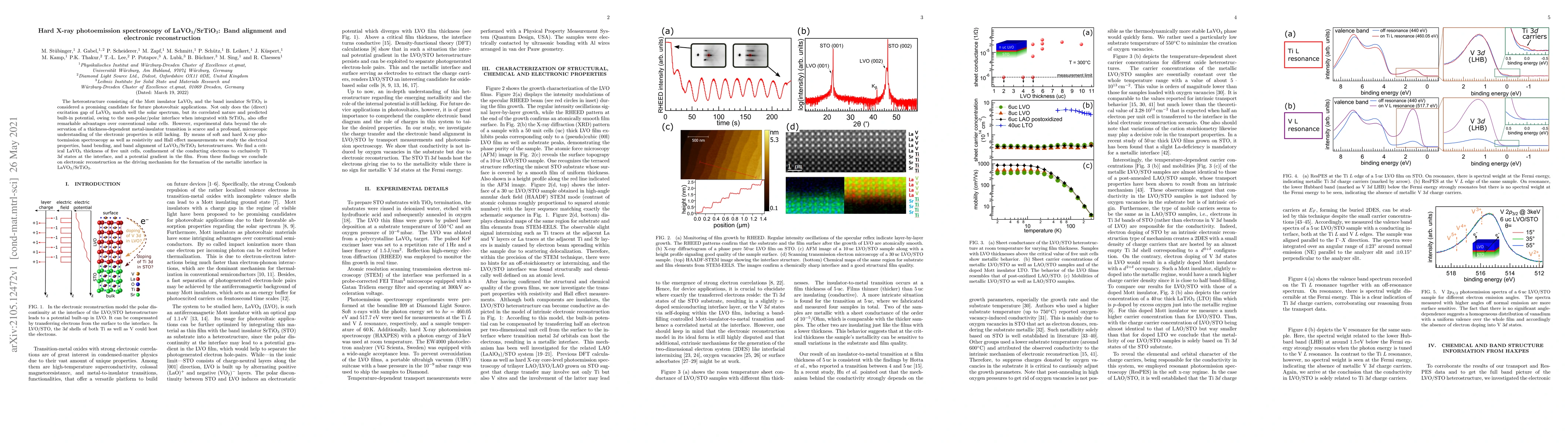 This study uses hard X-ray photoemission spectroscopy to investigate the electronic properties of LaVO$_3$/SrTiO$_3$ heterostructures, revealing a metallic interface formed through electronic reconstruction due to a potential gradient and confinement of conducting electrons to Ti 3$d$ states. These findings enhance the understanding of the material's potential for photovoltaic applications.