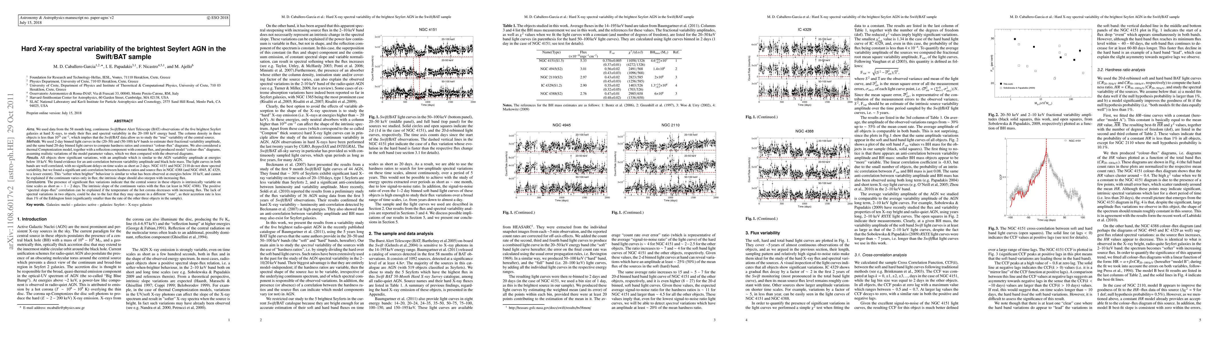 This study investigates the hard X-ray spectral variability of the five brightest Seyfert galaxies using Swift/BAT data, revealing significant flux and spectral variations. The findings suggest an anti-correlation between variability amplitude and black hole mass, and a "softer when brighter" behavior indicating that the intrinsic shape of the continuum steepens with increasing flux.