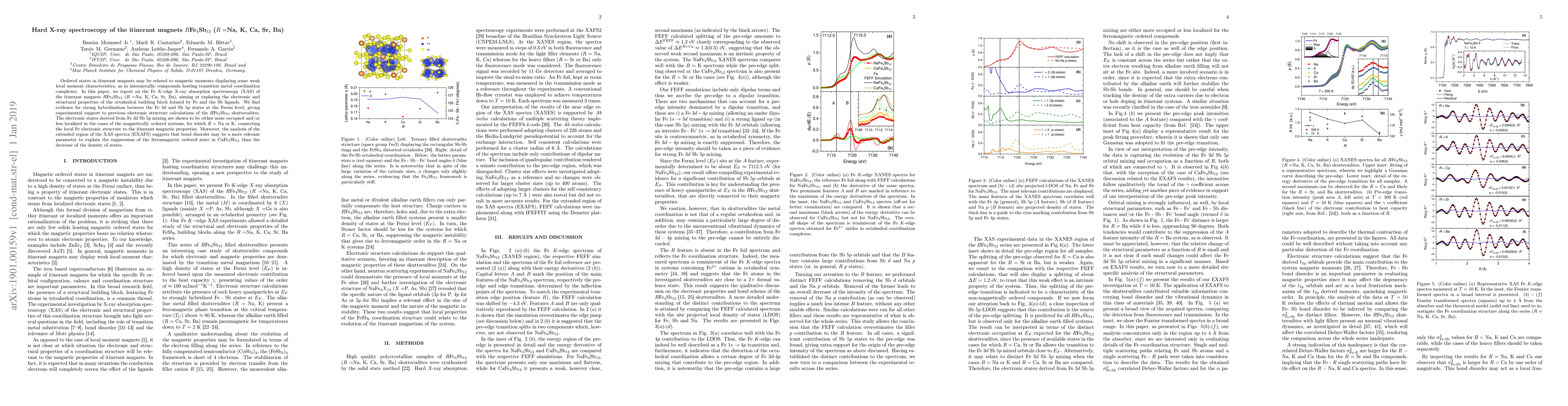 Research on itinerant magnets reveals strong hybridization between Fe $3d$ and Sb $5p$ states, connecting electronic structure to magnetic properties, and suggests bond disorder as a key factor in suppressing ferromagnetism.