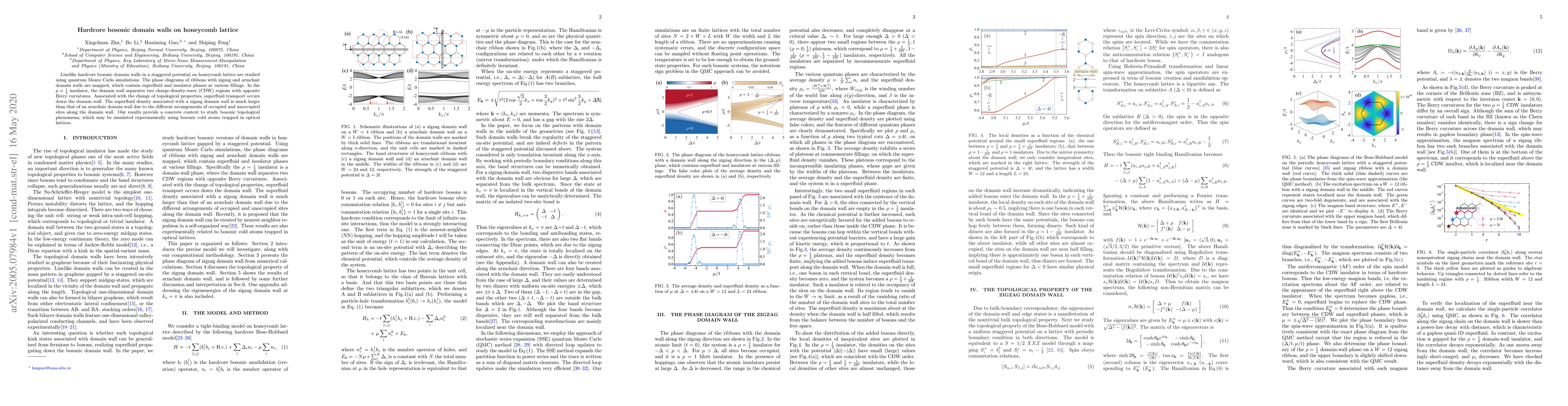 The study investigates domain walls in hardcore bosonic systems on honeycomb lattices, revealing superfluid transport along zigzag domain walls compared to armchair ones, linked to topological properties and potential experimental realizations using cold atoms.