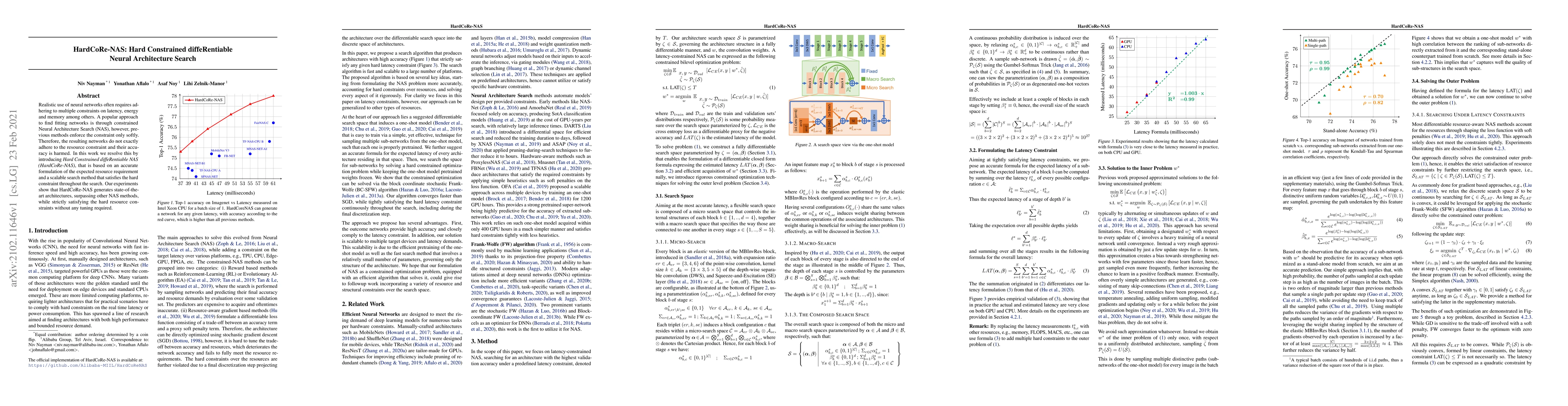HardCoRe-NAS introduces a hard-constrained differentiable Neural Architecture Search method that strictly adheres to resource constraints, generating state-of-the-art architectures while surpassing other NAS methods in accuracy without requiring any post-search tuning.