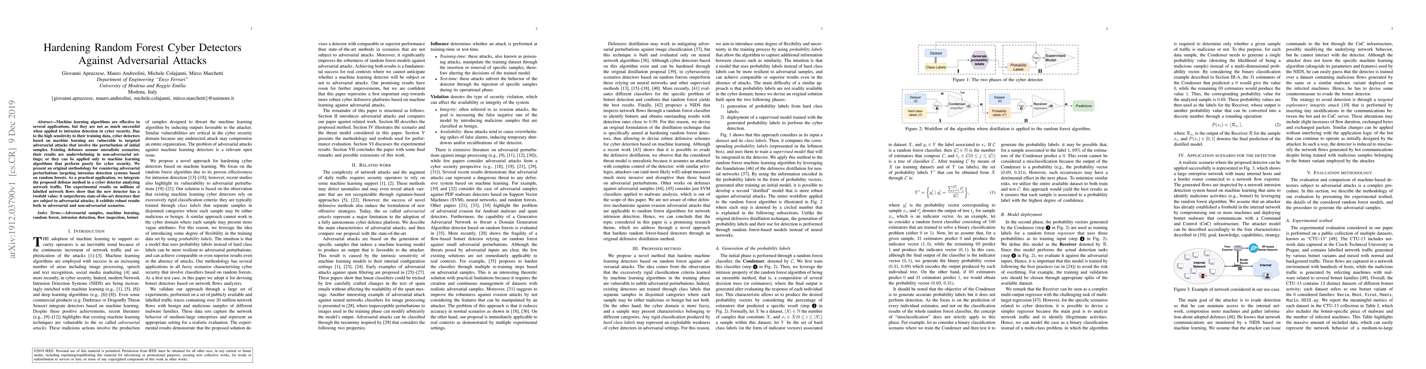 This paper proposes a novel methodology to harden random forest-based intrusion detection systems against adversarial attacks, demonstrating improved performance over state-of-the-art detectors in both adversarial and non-adversarial scenarios through extensive experiments on millions of network flows.