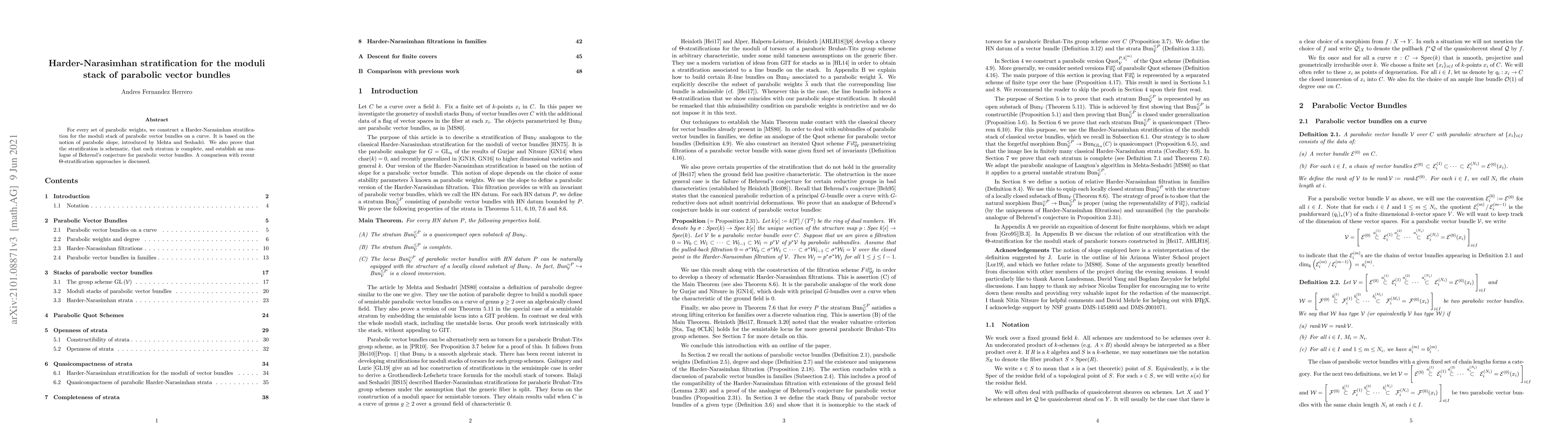 The paper constructs a Harder-Narasimhan stratification for the moduli stack of parabolic vector bundles on a curve, based on parabolic slope, proving its schematic completeness and establishing an analogue of Behrend's conjecture. It also compares with recent $\Theta$-stratification methods.