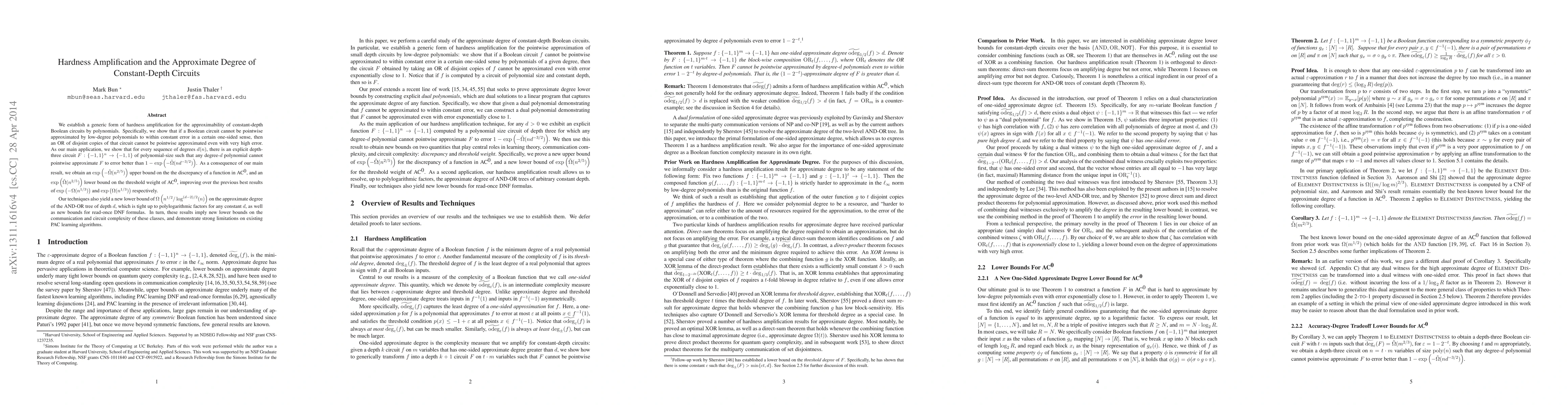 This paper establishes a form of hardness amplification for constant-depth Boolean circuits, showing that if a circuit cannot be approximated by low-degree polynomials, then an OR of its copies cannot be approximated even with high error. It also improves bounds on the discrepancy and threshold weight of AC^0 circuits and provides new lower bounds on the approximate degree of AND-OR trees and read-once DNF formulas, leading to implications for communication and circuit complexity.