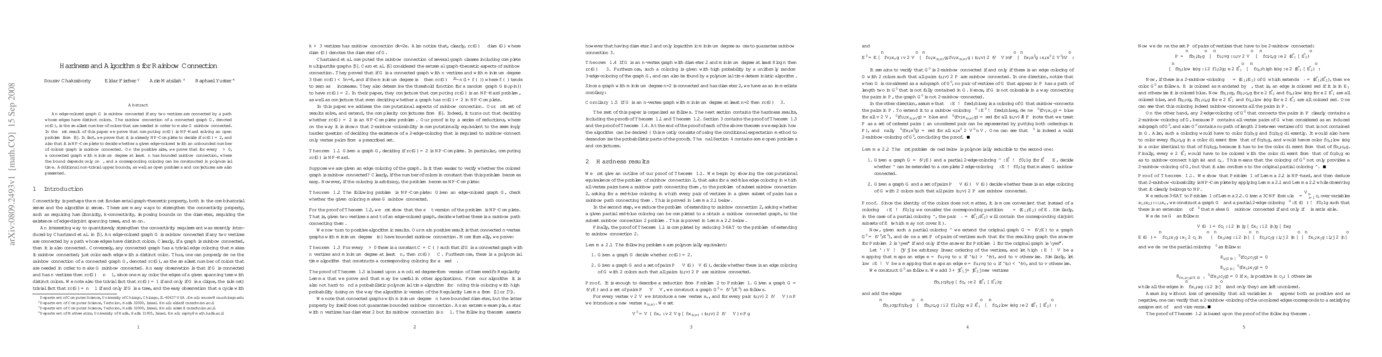 This paper proves that computing the rainbow connection of a graph is NP-Hard, establishing its NP-Completeness even for deciding if the rainbow connection equals 2. On a positive note, it shows that graphs with sufficiently high minimum degree have bounded rainbow connection, which can be constructed in polynomial time.