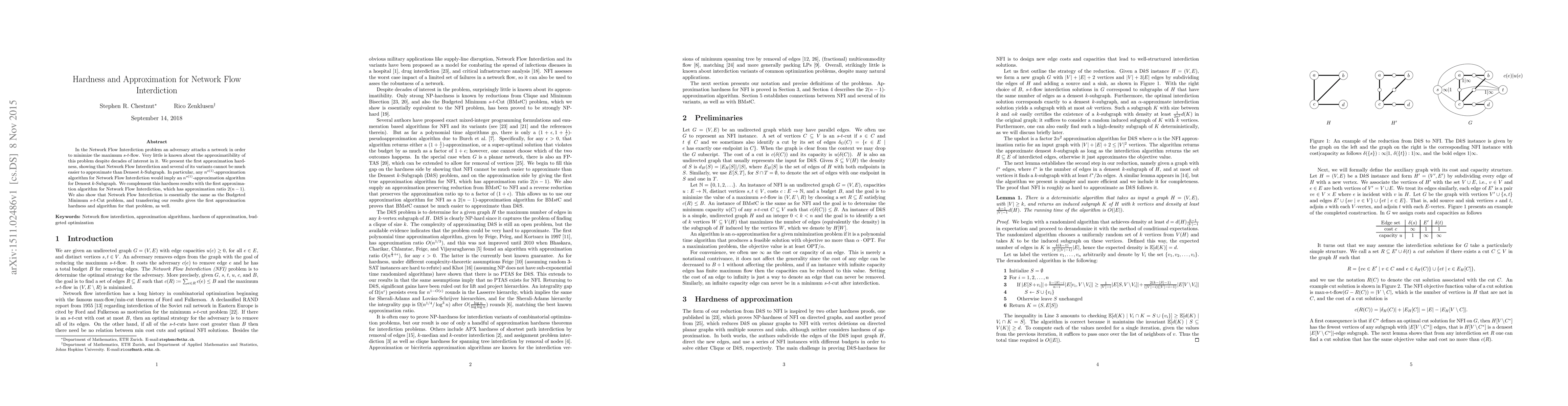 This paper establishes approximation hardness for the Network Flow Interdiction problem, demonstrating that it is as hard to approximate as the Densest k-Subgraph problem. It also presents the first approximation algorithm for Network Flow Interdiction with a ratio of 2(n-1), and extends these findings to the Budgeted Minimum s-t-Cut problem.