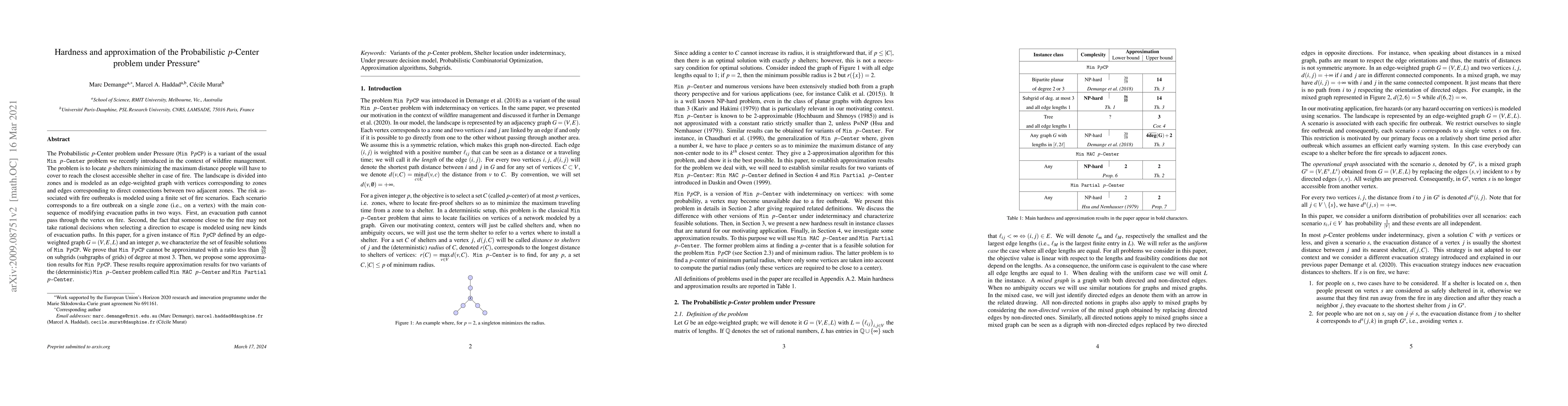 Researchers studied a variant of the p-Center problem to optimize shelter placement during wildfires, finding that it cannot be approximated with a ratio less than 56/55 on subgraphs of degree at most 3.