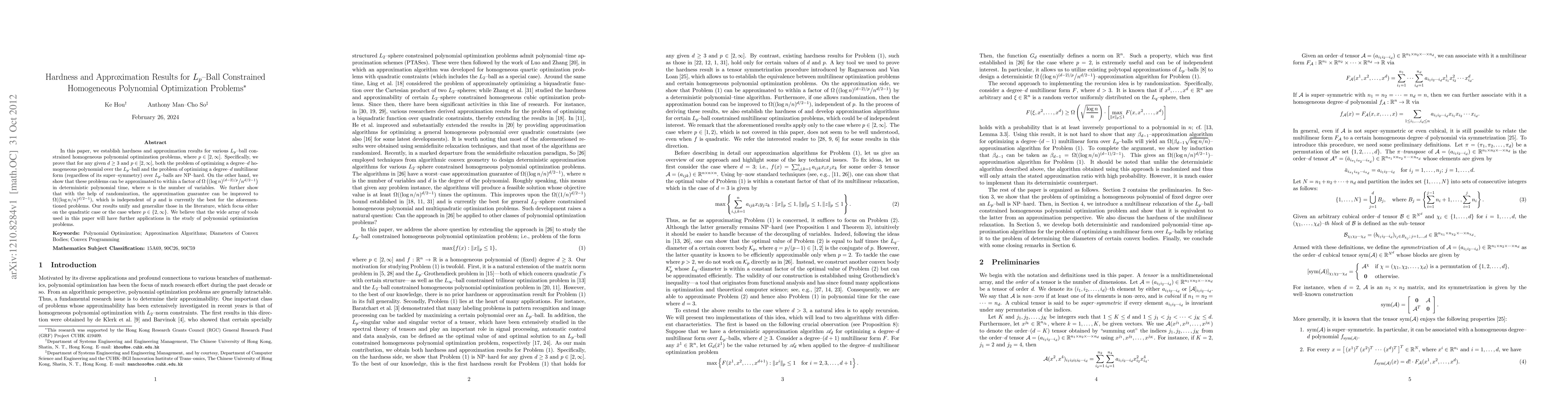 Researchers prove that certain polynomial optimization problems with L_p-ball constraints are NP-hard, but also show they can be approximated within a specific factor in deterministic polynomial time.