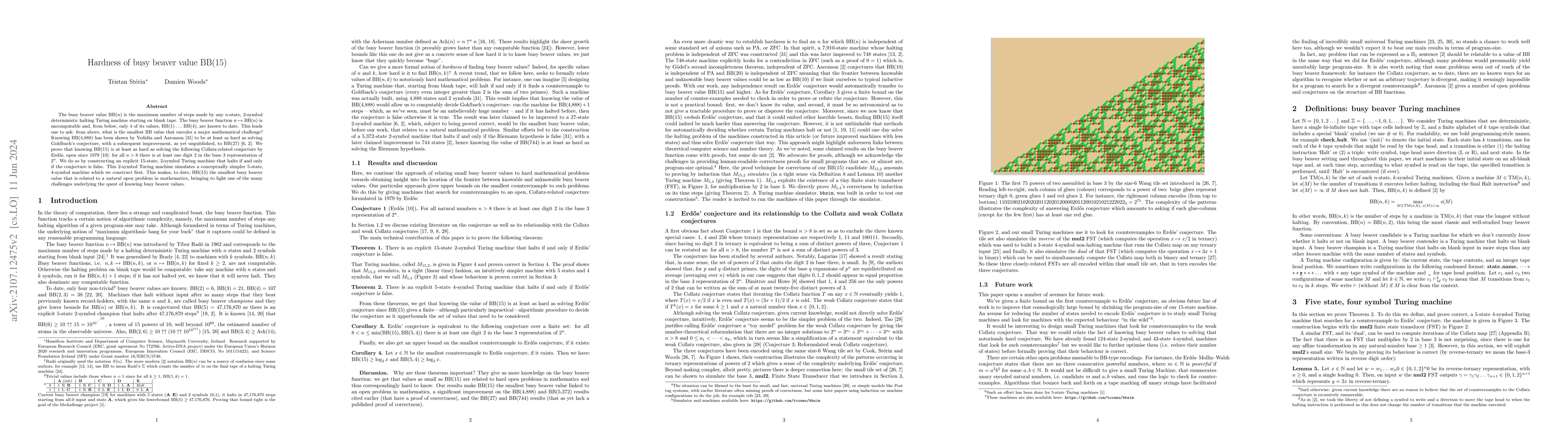 This paper demonstrates that determining the busy beaver value BB(15) is at least as challenging as solving the Collatz-related conjecture by Erdős, which posits the existence of a digit 2 in the base 3 representation of \(2^n\) for \(n > 8\). It constructs a 15-state Turing machine that halts if and only if the conjecture is false, highlighting BB(15) as the smallest known busy beaver value connected to an open mathematical problem.