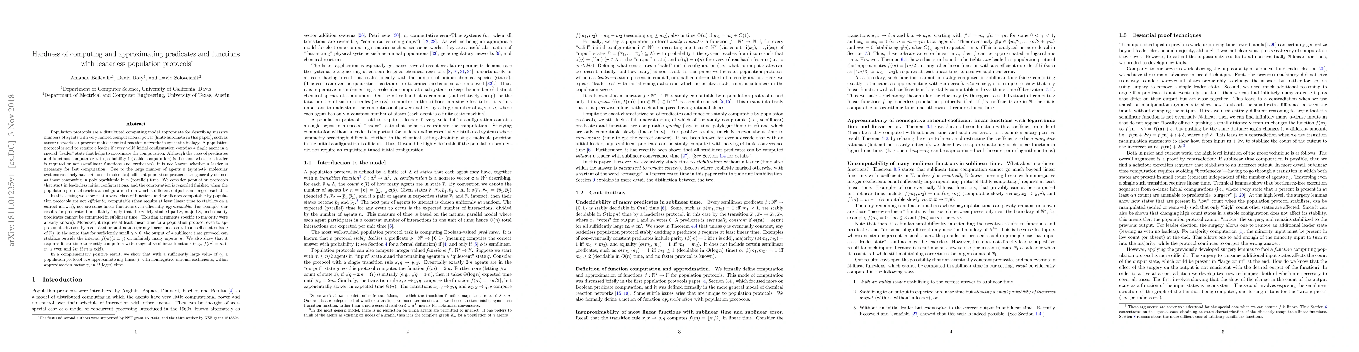 A study on population protocols found that many functions and predicates can only be computed in linear time, not sublinear time, indicating a fundamental limit to efficient computation in distributed systems.