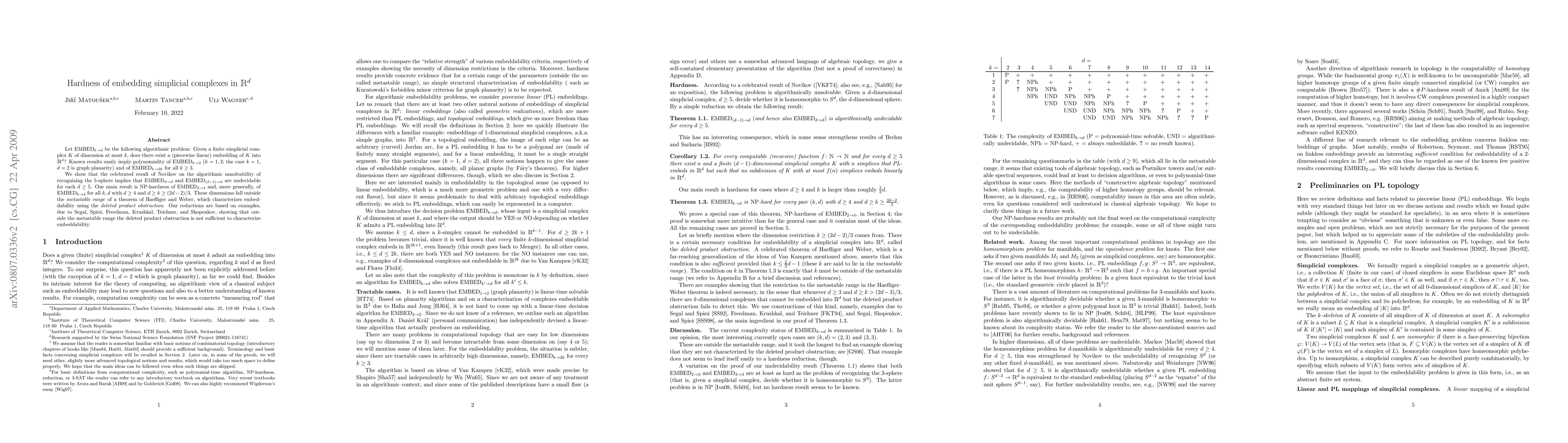 The paper introduces a reduction-based approach to prove NP-hardness results for simplicial complex embedding problems in $\R^d$, extending previous work on the metastable range.