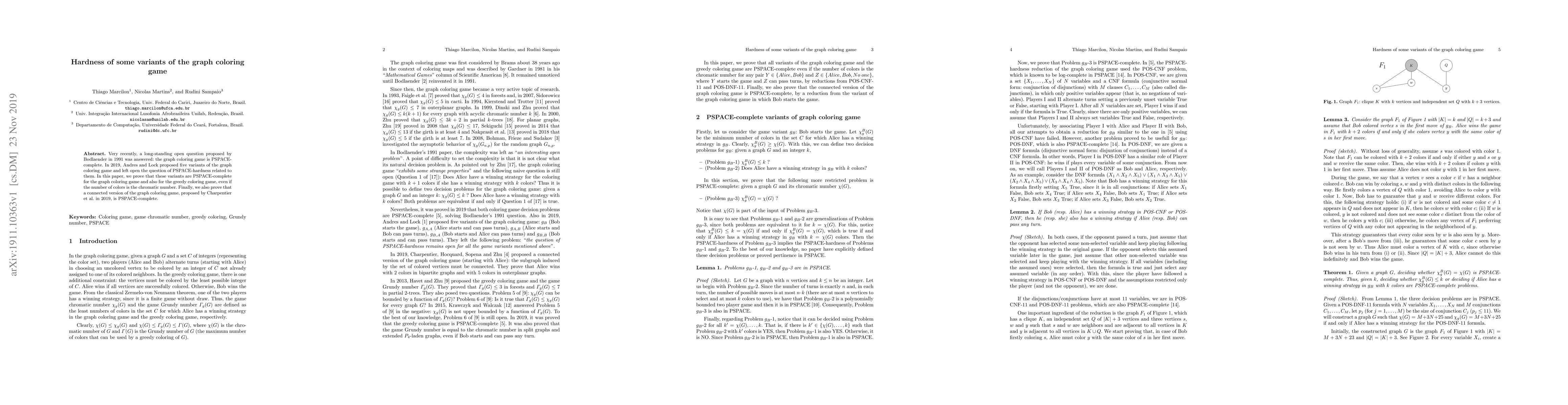 This paper proves that several variants of the graph coloring game, including those proposed by Andres and Lock and a connected version by Charpentier et al., are PSPACE-complete. It confirms the complexity of these games even when the number of colors equals the chromatic number.