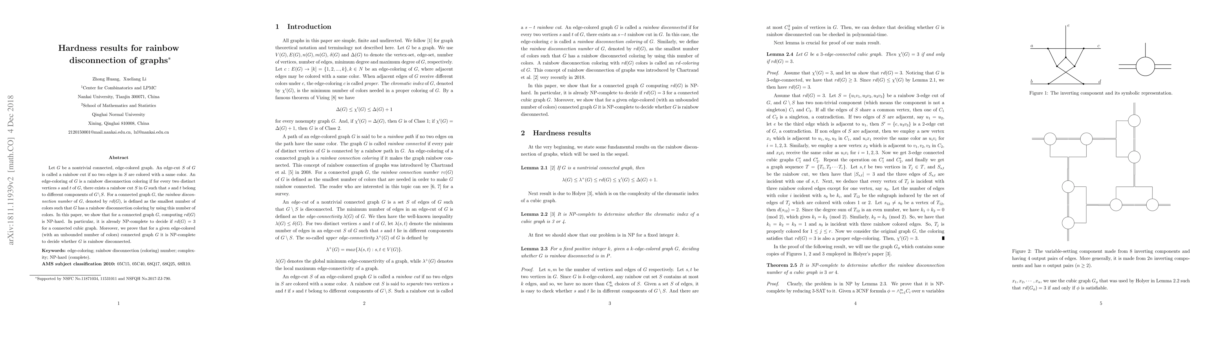 The paper establishes NP-hardness results for rainbow disconnection problems, extending existing complexity theory in graph coloring and connectivity.