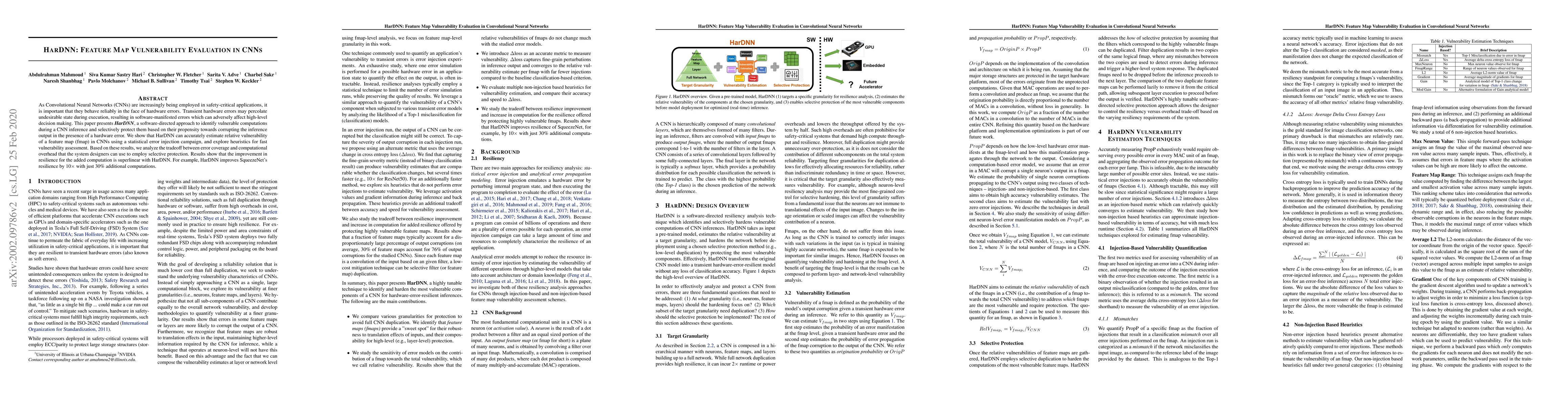 A new approach called HarDNN identifies vulnerable computations in Convolutional Neural Networks (CNNs) to improve resilience against transient hardware errors. It improves CNN performance by 10x with only 30% additional computations.