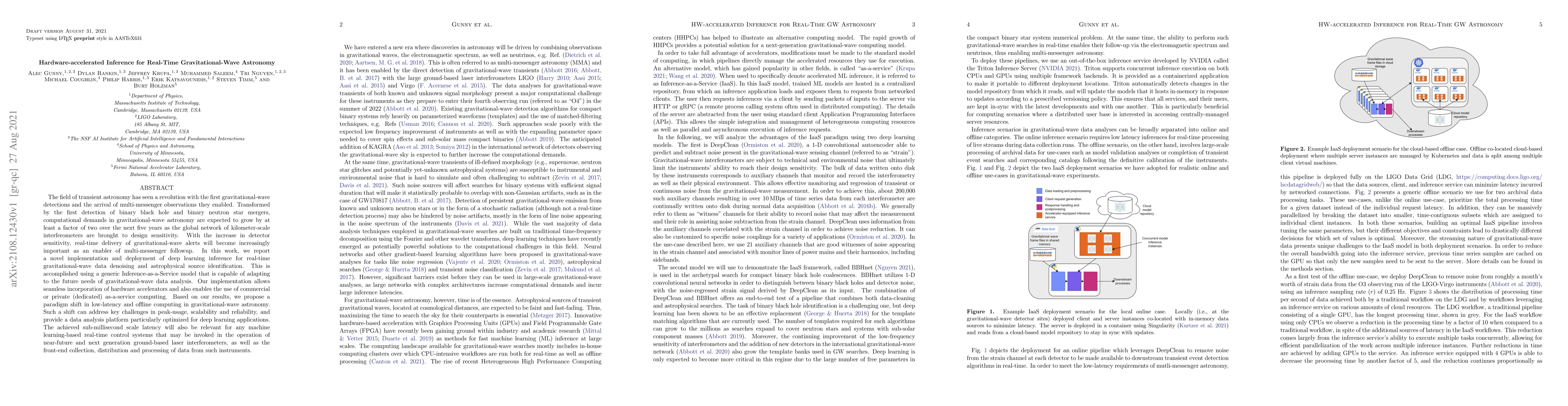 The paper presents a hardware-accelerated deep learning model for real-time gravitational-wave data analysis, enabling sub-millisecond latency. This Inference-as-a-Service approach is designed to meet future computational demands and improve peak-usage, scalability, and reliability in gravitational-wave astronomy.