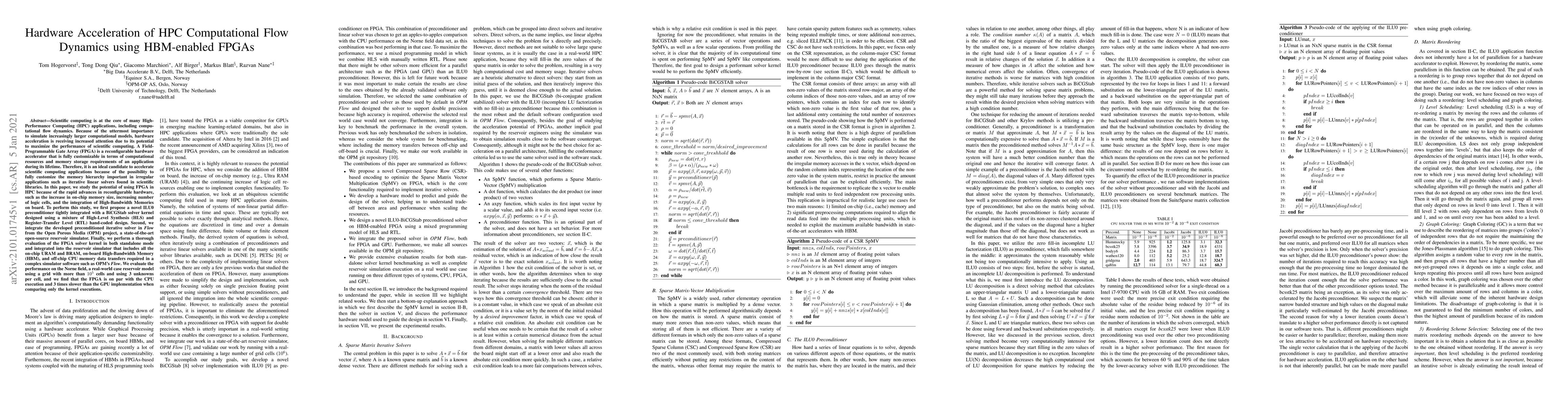 This paper explores the use of FPGAs with High-Bandwidth Memory (HBM) to accelerate high-performance computing (HPC) applications in computational flow dynamics. It proposes a novel ILU0 preconditioner integrated with a BiCGStab solver kernel, and evaluates its performance in a reservoir simulator, demonstrating significant improvements over traditional CPU-based methods.
