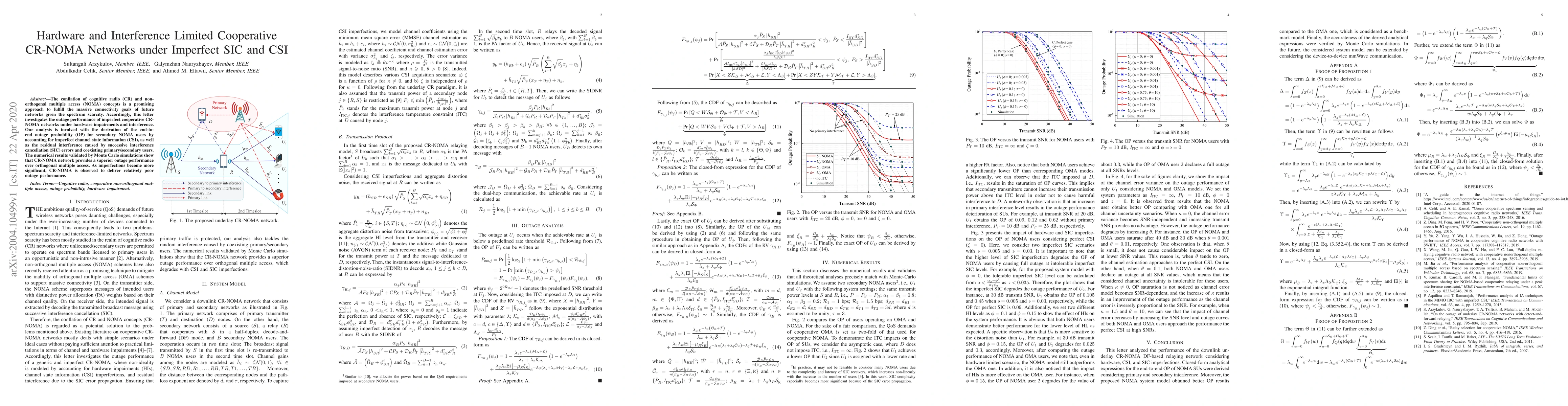 This paper explores the outage performance of cooperative cognitive radio (CR) networks employing nonorthogonal multiple access (NOMA) under hardware impairments and interference. The study derives the end-to-end outage probability for secondary users, considering imperfect channel state information and residual interference from successive interference cancellation errors. Numerical results demonstrate that CR-NOMA outperforms orthogonal multiple access but degrades significantly with increasing imperfections.