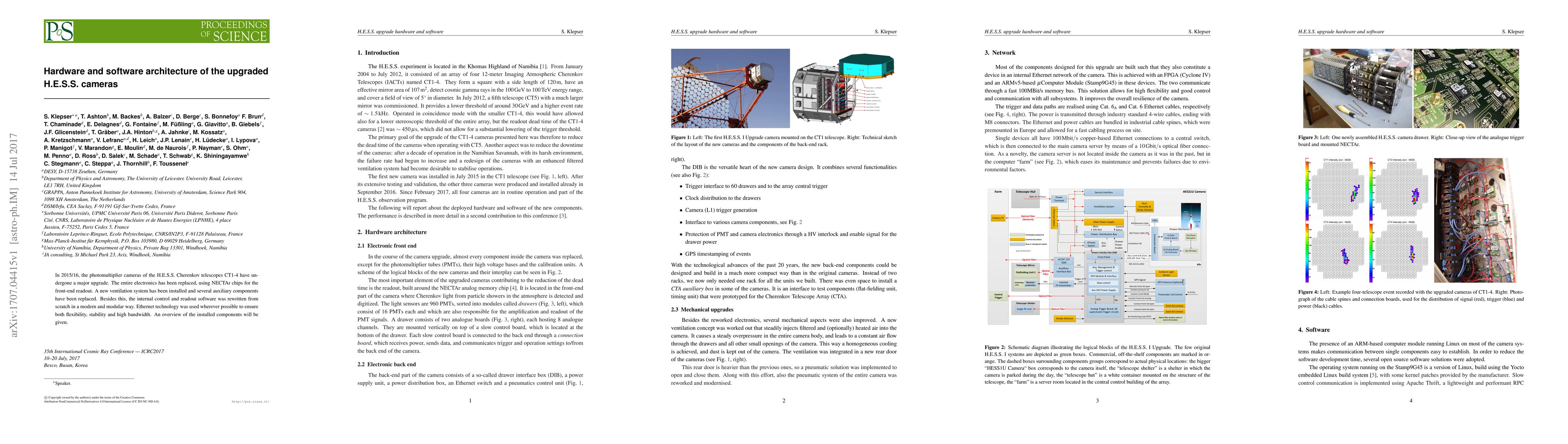 The H.E.S.S. Cherenkov telescopes underwent a significant upgrade in 2015/16, replacing photomultipliers with NECTAr chips and overhauling the electronics, ventilation system, and auxiliary components. The internal control and readout software was also completely rewritten for modularity and efficiency, utilizing Ethernet technology for enhanced flexibility and stability.