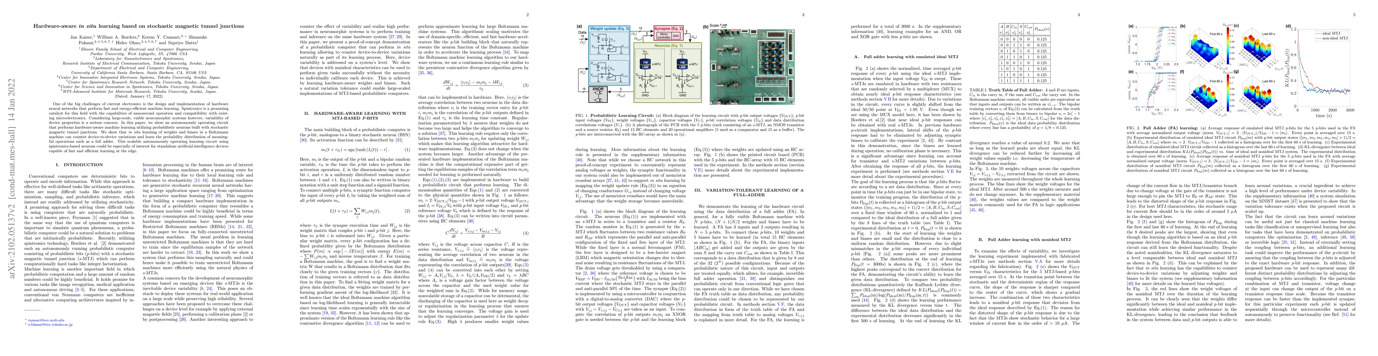 This paper presents a hardware-aware machine learning circuit using stochastic magnetic tunnel junctions for neuromorphic systems, demonstrating $in \ situ$ learning of weights and biases in a Boltzmann machine that counters device variability and enables efficient, scalable learning for edge AI applications.