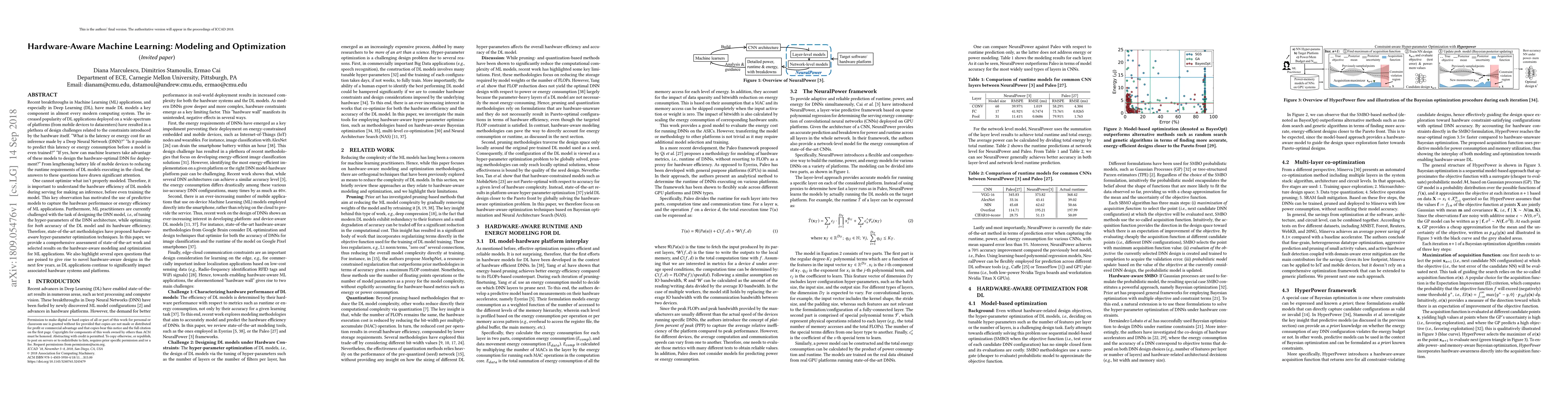 This paper reviews state-of-the-art methodologies for hardware-aware modeling and optimization of Deep Learning (DL) applications, focusing on predicting and improving DL model performance and energy efficiency during inference. It highlights open questions and challenges in designing hardware-optimal DNNs, emphasizing the need for predictive models to optimize both accuracy and hardware efficiency.