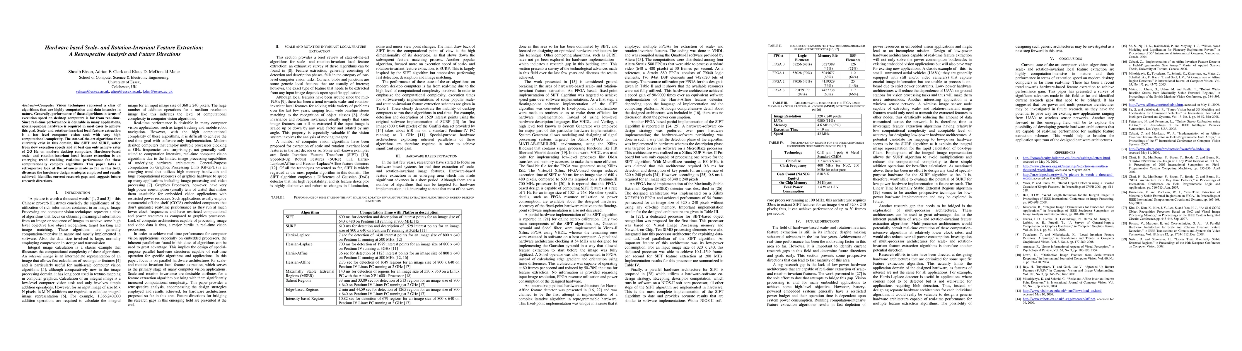 Computer Vision techniques represent a class of algorithms that are highly computation and data intensive in nature. Generally, performance of these algorithms in terms of execution speed on desktop computers is far from real-time. Since real-time performance is desirable in many applications, special-purpose hardware is required in most cases to achieve this goal. Scale- and rotation-invariant local feature extraction is a low level computer vision task with very high computational complexity. The state-of-the-art algorithms that currently exist in this domain, like SIFT and SURF, suffer from slow execution speeds and at best can only achieve rates of 2-3 Hz on modern desktop computers. Hardware-based scale- and rotation-invariant local feature extraction is an emerging trend enabling real-time performance for these computationally complex algorithms. This paper takes a retrospective look at the advances made so far in this field, discusses the hardware design strategies employed and results achieved, identifies current research gaps and suggests future research directions.