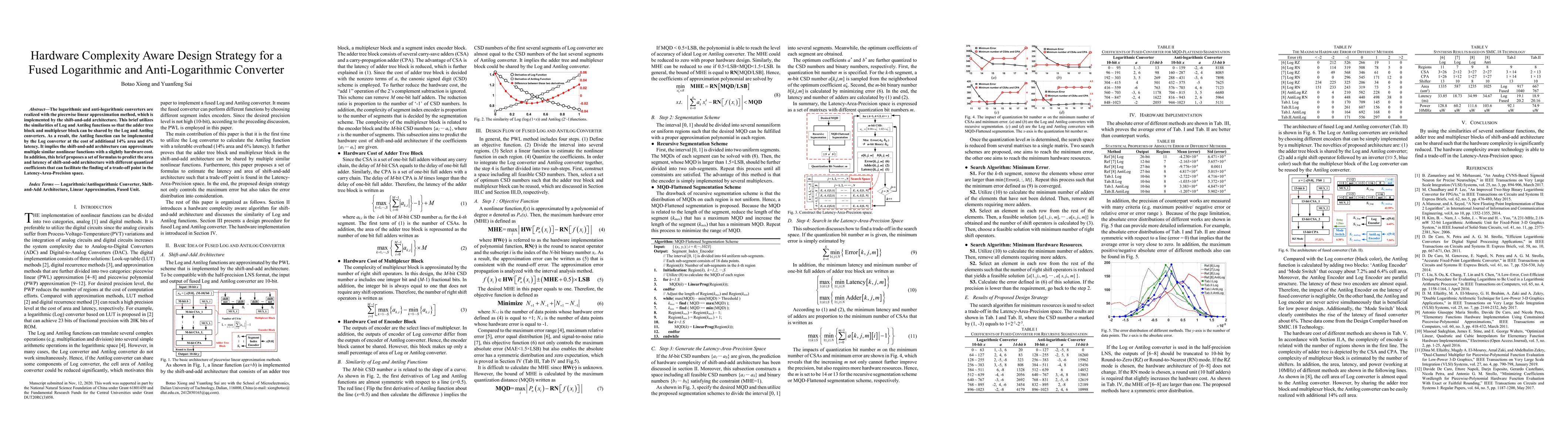 The logarithmic and anti-logarithmic converters are realized with the piecewise linear approximation method, which is implemented by the shift-and-add architecture. This brief utilizes the similarities of Log and Antilog functions so that the adder tree block and multiplexer block can be shared by the Log and Antilog converters. As a result, the Antilog function can be implemented by the Log converter at the cost of additional 14% area and 6% latency. It implies the shift-and-add architecture can approximate multiple similar nonlinear functions with a slightly hardware cost. In addition, this brief proposes a set of formulas to predict the area and latency of shift-and-add architecture with different quantized coefficients that can facilitate the finding of a trade-off point in the Latency-Area-Precision space.