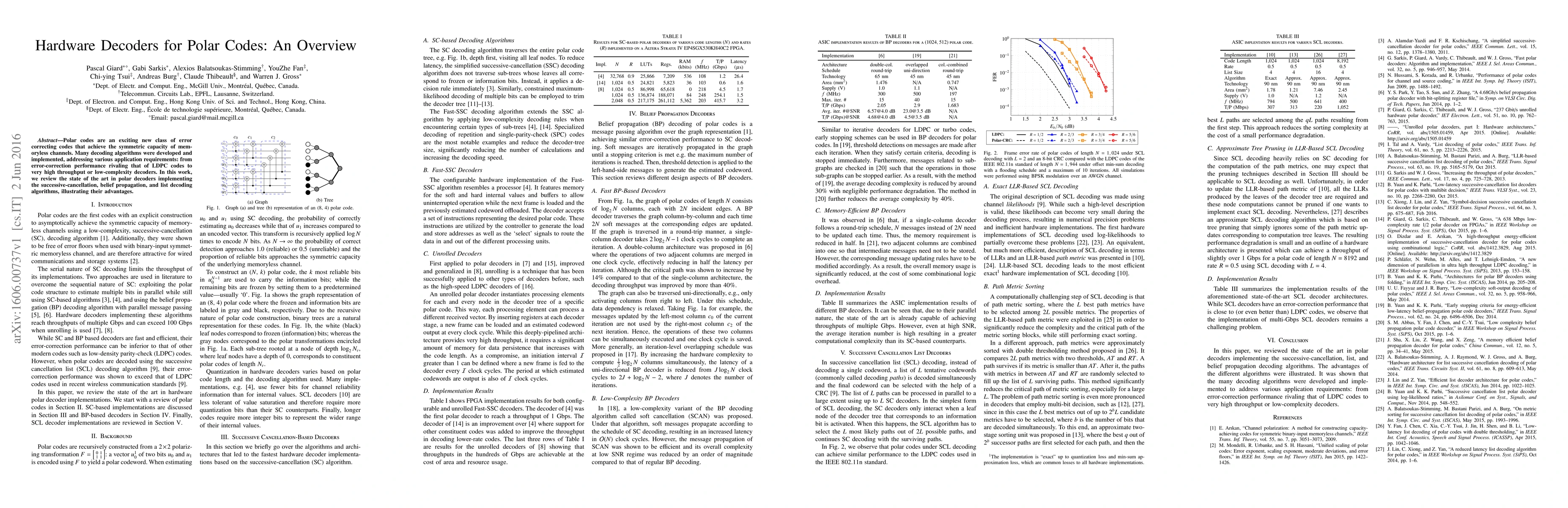 The paper provides an overview of hardware decoders for polar codes, focusing on successive-cancellation, belief propagation, and list decoding algorithms.