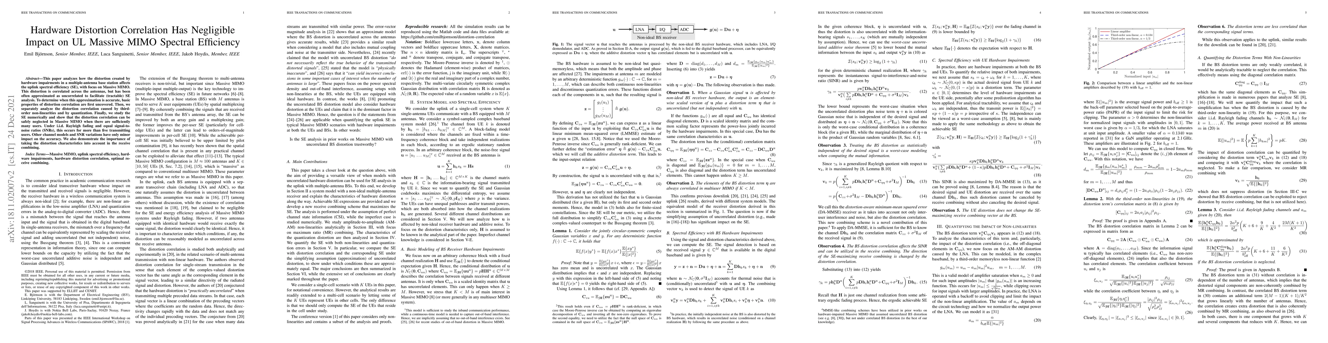 This paper finds that hardware distortion correlation in Massive MIMO systems has a negligible impact on uplink spectral efficiency, especially when there are five or more users. The study shows that this correlation can be safely ignored under various channel models and SNR conditions.