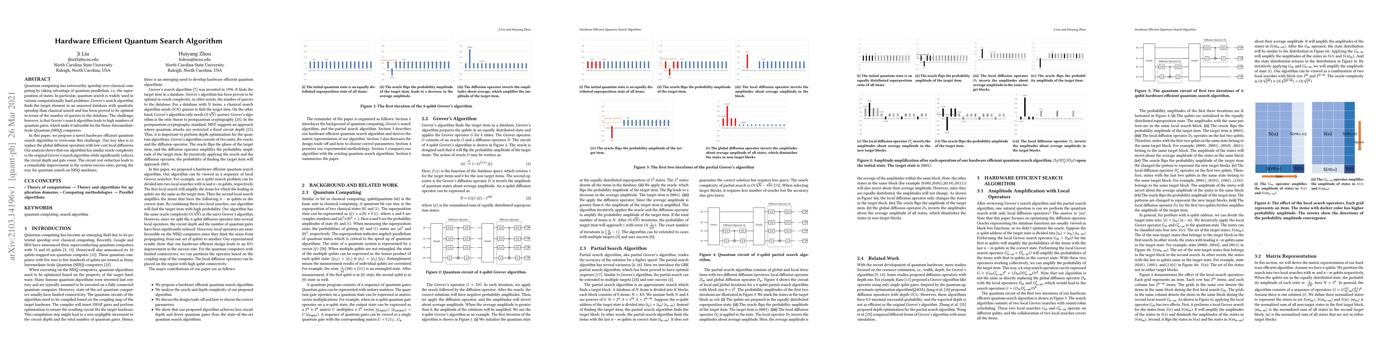 A hardware-efficient quantum search algorithm is proposed using a combination of single-qubit gates and a modified Grover's algorithm.